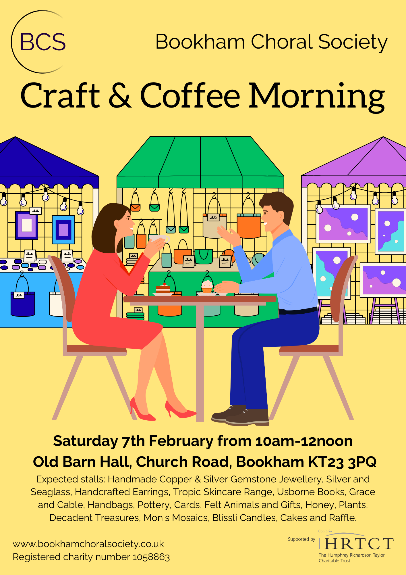 Enjoy a wonderful selection of craft and gift stalls showcasing handmade jewellery, pottery, candles, cards, books, plants, skincare, honey, artwork and more — all created by talented local makers. There’ll be delicious cakes, good coffee, friendly conversation and a raffle too.